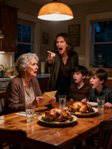 “It is,” she snapped. Then she glanced toward the hallway like she remembered the kids could overhear, and she forced a smile that looked painful. “It’s dinner, Mom. Can we not do this?”