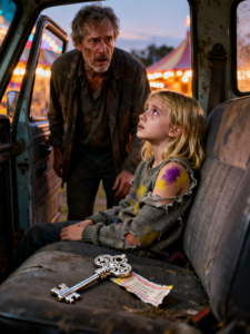 We walked through the parking lot toward my truck. The wind pushed at the carnival music behind us like it was trying to follow. Lily climbed into the passenger seat without her usual chatter. She stared straight ahead, hands in her lap, knuckles white.